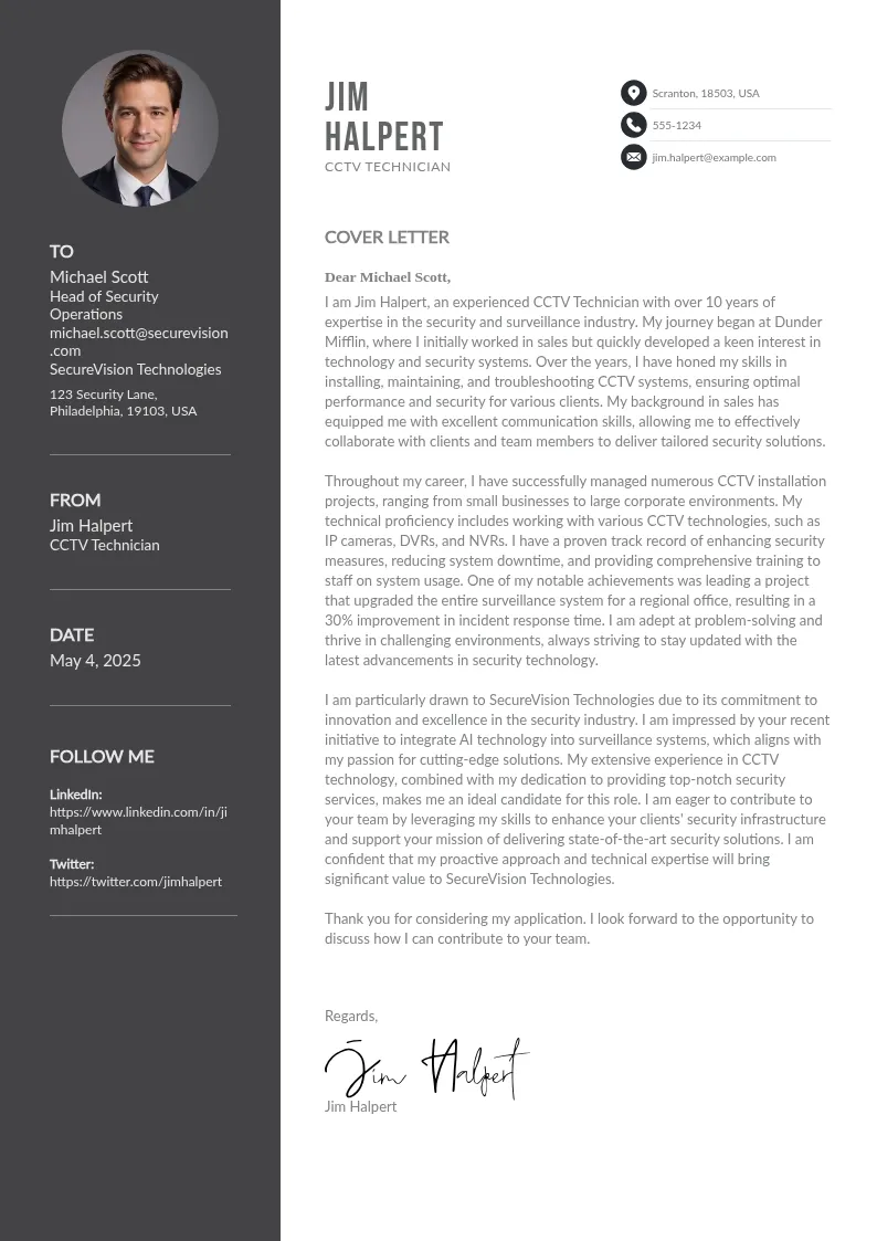 Wrapping Up: Crafting the Perfect CCTV Technician Cover Letter