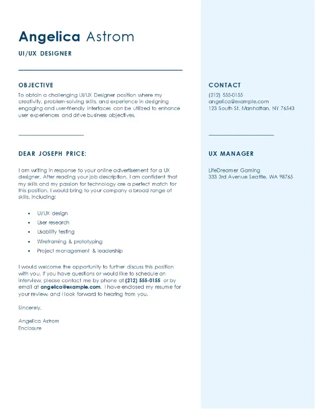 A cover letter must be engaging just like any other section while selecting good resume templates. The template above is free, attractive, and will help in the last minutes of curating an application for a job. Click to browse.