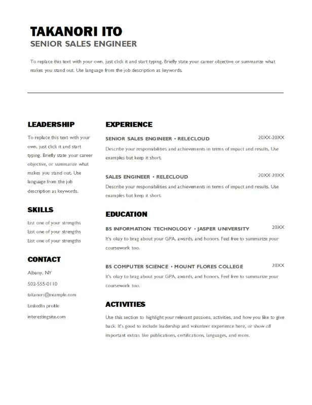 For example, the education section looks stronger when black text is set against a white background. You can use these good resume templates Word as a simple guide for your own resume.